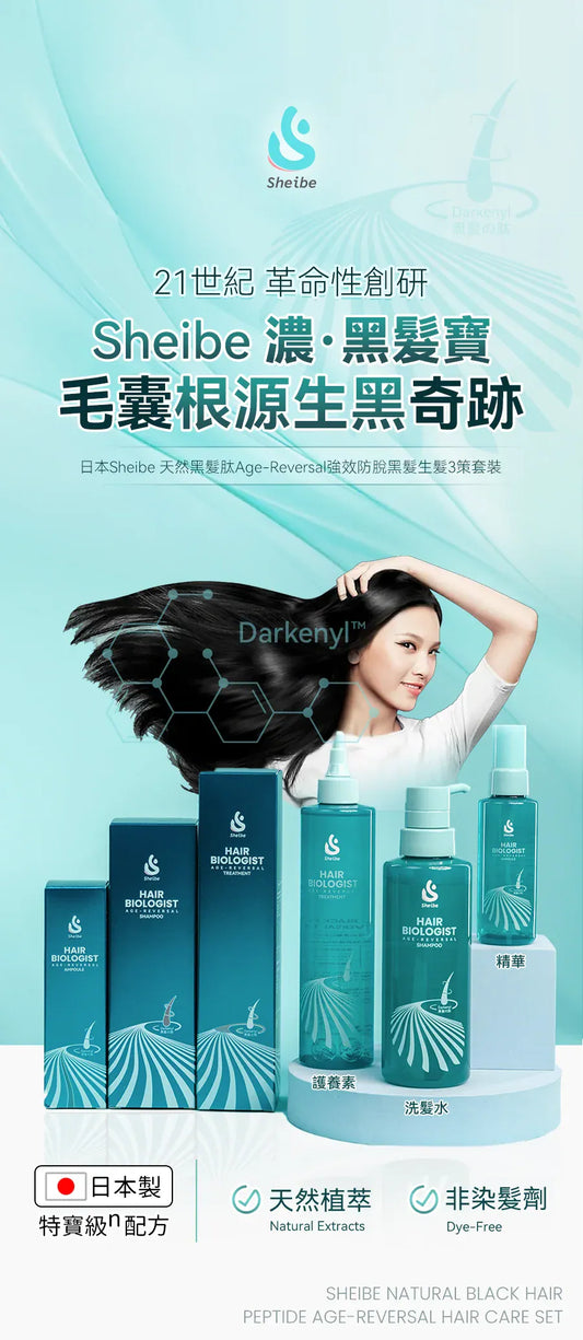現貨❤️日本Sheibe 天然黑髮肽Age-Reversal強效防脫黑髮生髮三策套装