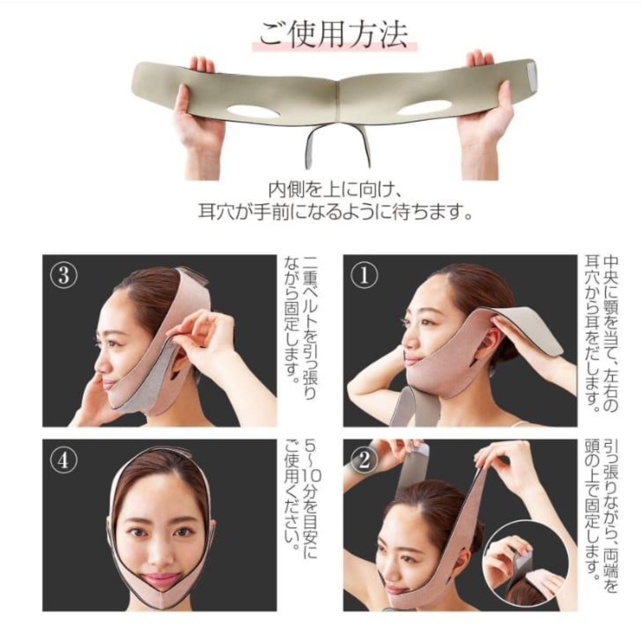 🔹從下巴到頭頂佩戴,用腰帶固定以物理抬起臉部。